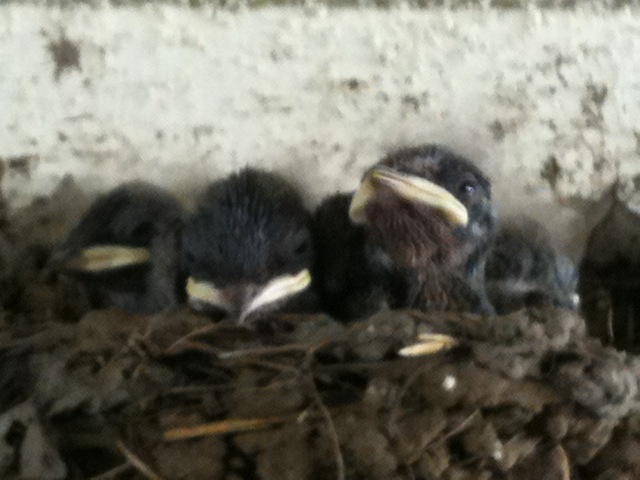 つばめさん 今年は家にまた別の一家が来てくれました!やったね!かわいくてしょーがない(笑)先日雛が3羽孵ったばっかり。でも日に日に大きくなりますね。全身を被ってたほわんほわんの産毛も、羽が生え揃ってきたから、頭のてっぺんにちょこっと残すのみ。せっかくだから一度でも親と一緒の瞬間を写してみたい。