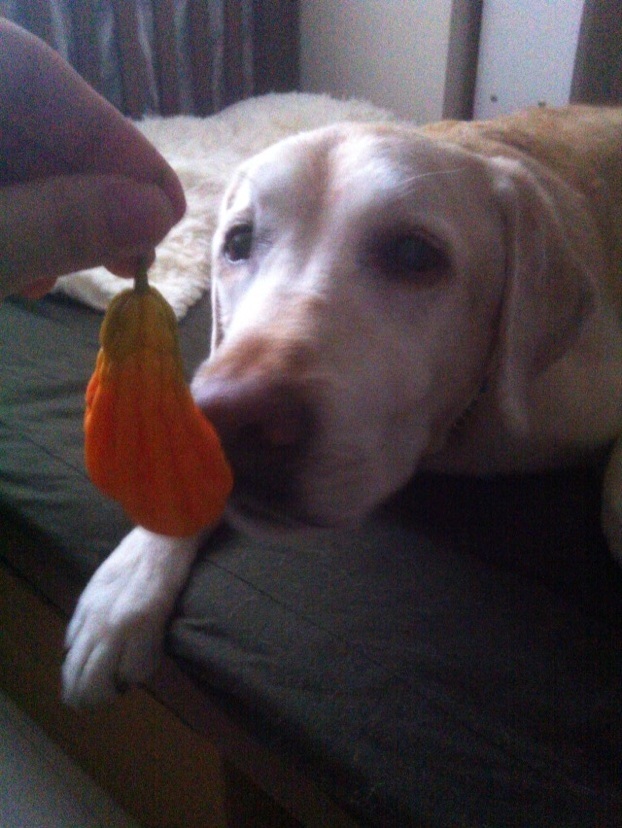 ガーン( ̄◇ ̄;) ゴーヤーがぁ!!!葉っぱの後ろの目立たないところでなってて、こんなオレンジになって初めて気づいた(笑)これは前回のより小さいね。食べられるうちに収穫してたとしても、超小人用(笑)ところで、可哀相なことにうっかりいけないものを口にしてルークは夜中と今朝下痢ちゃん(T ^ T)ソリッドスツール飲んでヨーグルト食べて早く治ってね(^-^)/